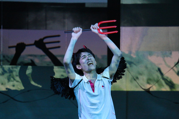 先锋的表现形式是这部话剧的特色。台上只有一个演员,要完成多种角色的转换,还要利用舞台有限的空间、道具、时间来完成造型上的跨越,无疑是巨大的挑战。边毅利用音色、口音、语气和动作的变化,抓住每个角色的特点。同时,布景和与影像的配合,使得舞台空间更为丰富灵动。演员时而利用道具完成角色的跳进跳出,时而与投影互动,一个人完整地演绎了丰富的剧情,甚至还完成了一段“双人”舞蹈。观众常常捧腹大笑,随着故事推进产生情感上的共鸣,赞叹于剧中精妙的设计和环环相扣的伏笔。